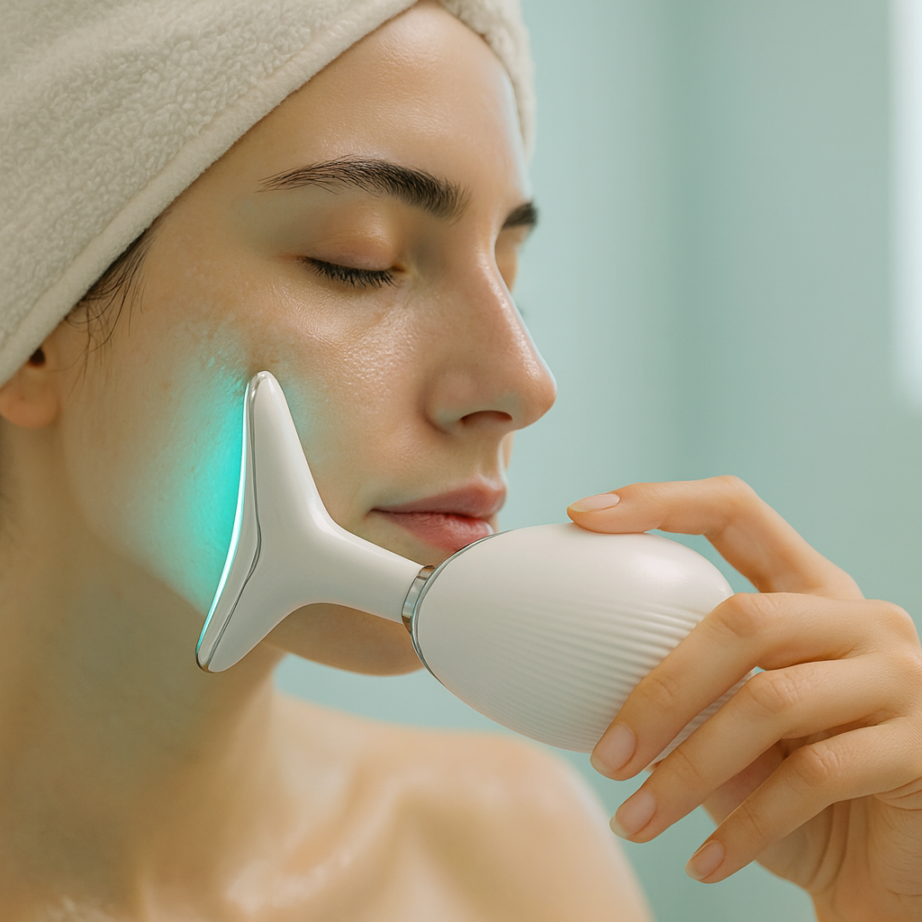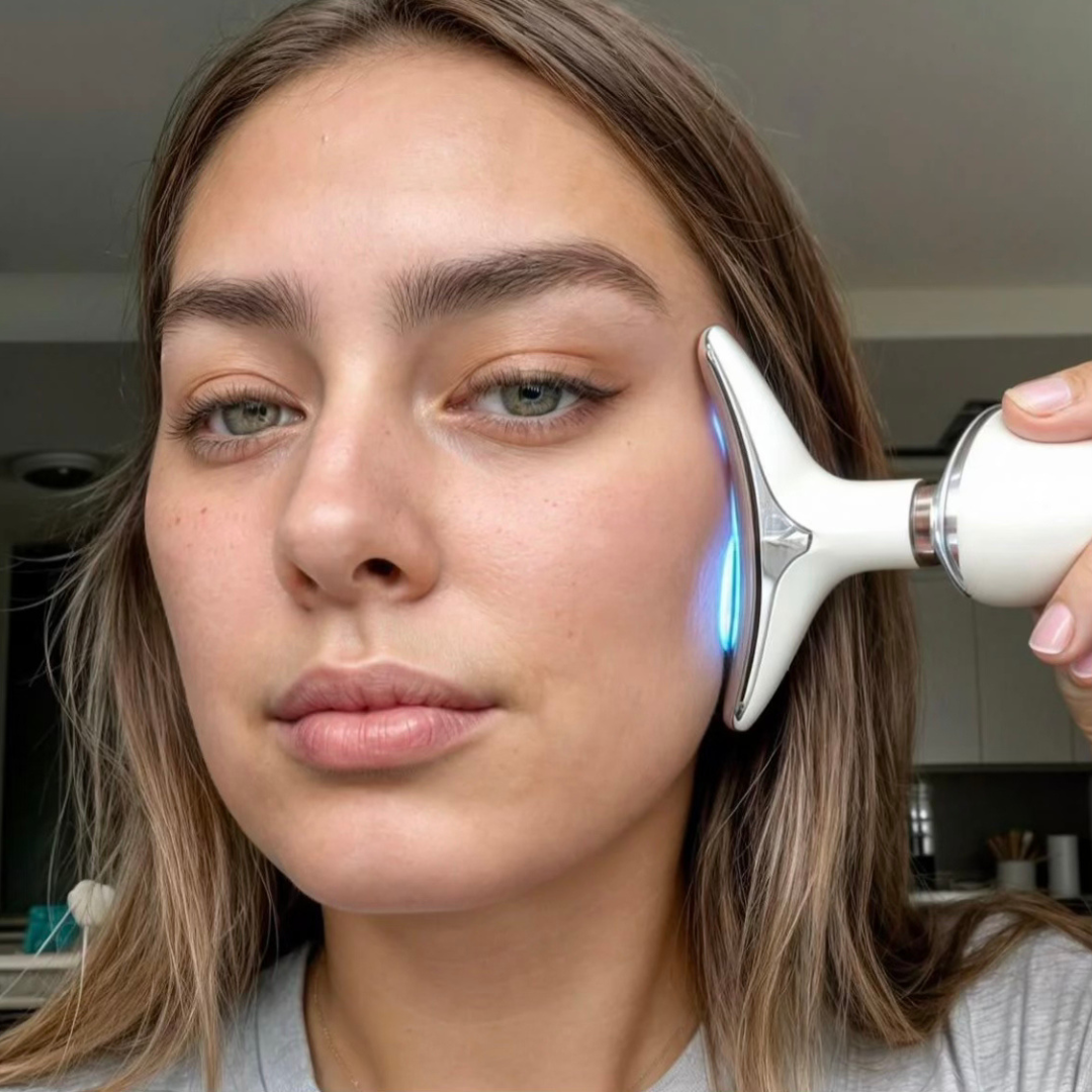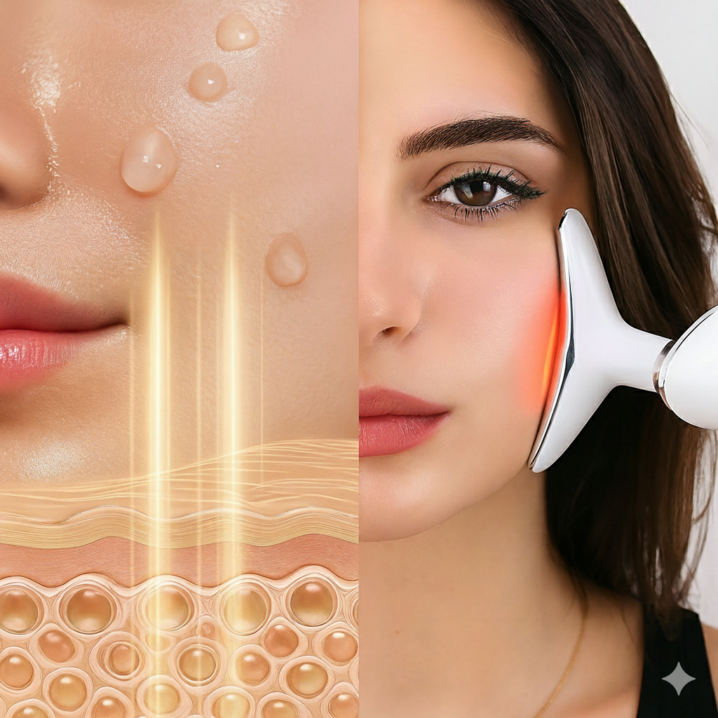 האור חודר לעומק העור וממריץ את התאים לעבוד מהר יותר: האור האדום מעודד ייצור קולגן ומחליק קמטים, האור הכחול מרגיע פצעונים ודלקות, והאור הירוק מאזֵן את גוון העור ומעניק לו מראה אחיד ובריא. החום העדין והויברציה משפרים את זרימת הדם ומחזקים את תהליך ההתחדשות הטבעי של העור.