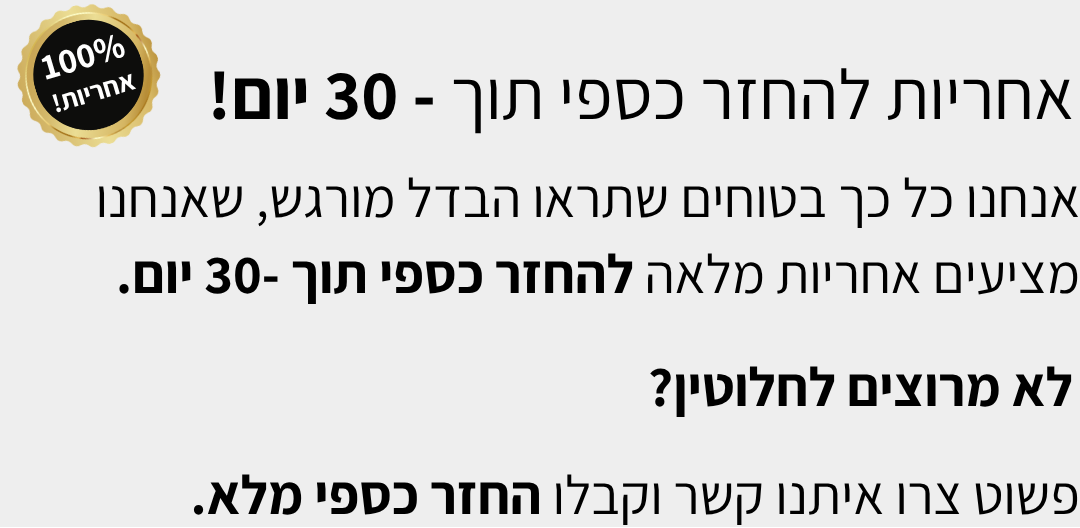 פשוט רוצה להחזיר? החזר כספי מלא.